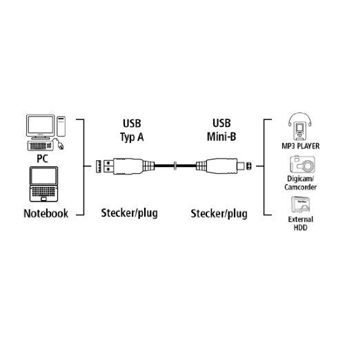 Voor het aansluiten van een PC/notebook op een USB-eindapparaat (bijv. MP3-speler, digitale camera, externe harde schijf, USB-hub/kaartlezer)