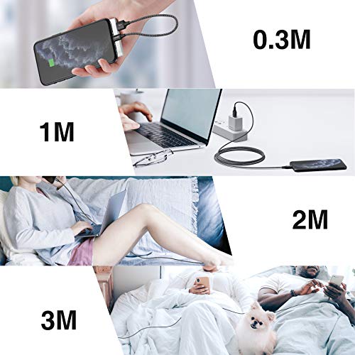 【Handige lengte】Deze lightning kabel gebruikt Voor verschillende gelegenheden, 4Pack – 0.3M 1M 2M 3M lengte, de perfecte lengte gebruikt in de woonkamer/kantoor, laad uw telefoon of andere apparaten gemakkelijk terwijl u op bed/achterbank van de auto.
