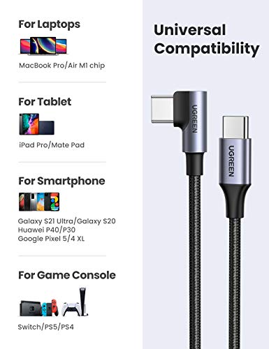 Specification: UGREEN USB Type C naar USB C Kabel 90 Graden 60W PD Snel Opladen Nylon Kabel Compatibel Met MacBook Air 2020/ 2019, iPad…