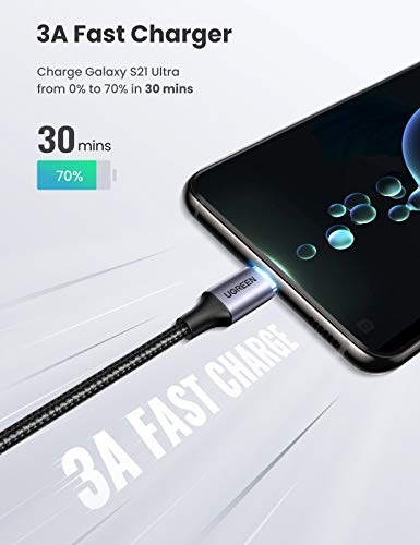 ROBUUST EN DUURZAAM: Deze UGREEN USB Type C oplaadkabel is gemaakt van een aluminium behuizing met anti oxidanten, die is ontworpen om een langere levensduur te bieden en de gebruikelijke slijtage te voorkomen. De nylon schede voorkomt niet alleen knik, maar is ook flexibel genoeg om in een zak te wikkelen en te stoppen. Versterkte kabelstaart, meer dan 10.000 geteste buiglevensduur, hoge buigsterkte en goede taaiheid, geen kabelbreuken meer.