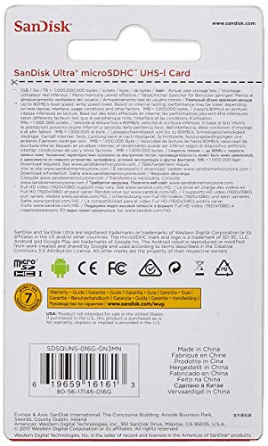 Specification: SanDisk Sdsquns-016G-Gn3Mn Ultra Micro Sdhc Class 10 Geheugen Kaart, 16Gb, grijs, wit