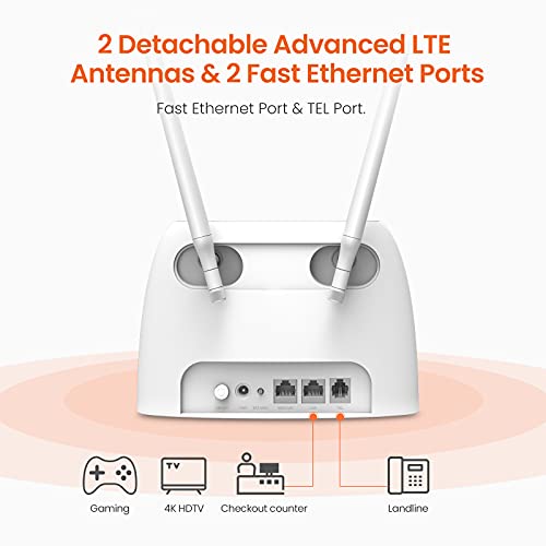 Specification: Tenda 4G06 Router 4G VoLTE Cat4 300 Mbps, mobiele WLAN-router met simkaartsleuf, RJ11-poort voor spraakdienst, 2…