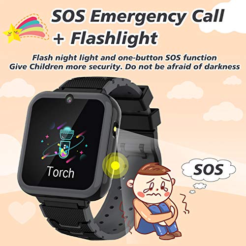 【 Handig slimme horloge voor kinder】:Kinderen slimme horloge voor 3-12 jaar jongens en meisjes.Deze kinderen smartwatch heeft 7 leren spelen,5 talen,3 wekkers, SOS, wijzerplaat, 10 aangepaste Cotacts, Muziekspeler, Camera, Ablum, Zaklamp, Record, Calculator, Tijd en Data, Stille Mode, Oudermodus, Callog.