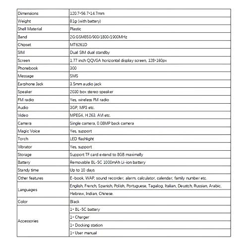 Specification: 2G mobiele telefoon 1,77 inch scherm SOS senior mobiel 1000 mah Dual SIM Draadloze FM-radio Luidspreker Grote knoppen…