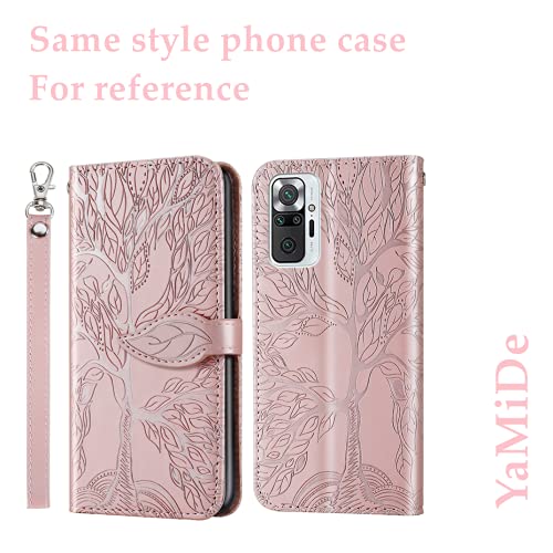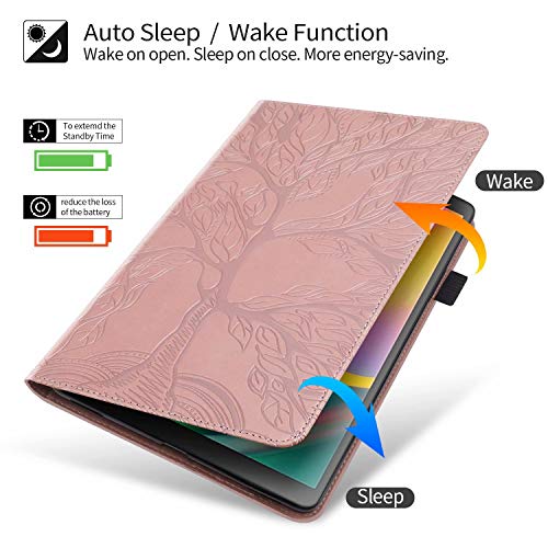 YaMiDe Hoesje Compatibel met Samsung Galaxy Tab A 8.0″ 2019(SM-T290/T295/T297), [met schermbeschermer], lederen Hoesje met kaartsleuf en Auto Sleep/Wake, Levensboom, Rose goud