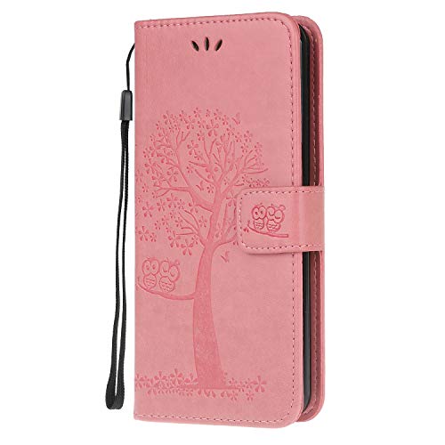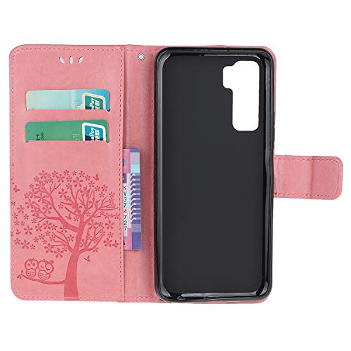 Huawei P40 Lite Flip Case PU Leather Emboss Tree Owl Folio Magnetische Kickstand Cover met Card Slots voor Huawei P40…