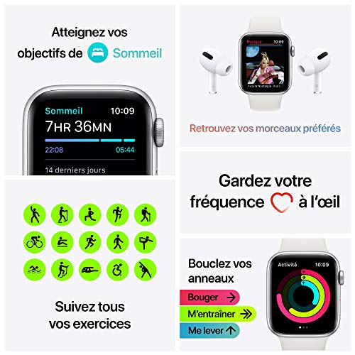 Specification: Apple Watch SE (GPS, 44-mm) kast van spacegrijs aluminium – Zwart sportbandje